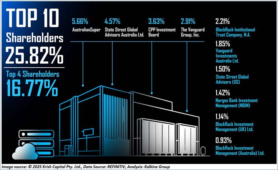1.3: Top 10 Shareholders: The top 10 shareholders together form ~25.82% of the total shareholding. AustralianSuper and State Street Global Advisors Australia Ltd. are holding maximum stakes in the company at ~5.66% and ~4.57%, respectively.