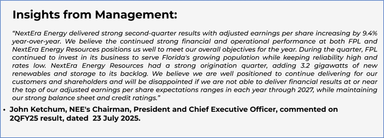 1.4 Key Metrics: NEE's basic earnings per share recorded at USD 0.99 in 2QFY25 vs USD 0.79 in 2QFY24. Below are captured other metrics: