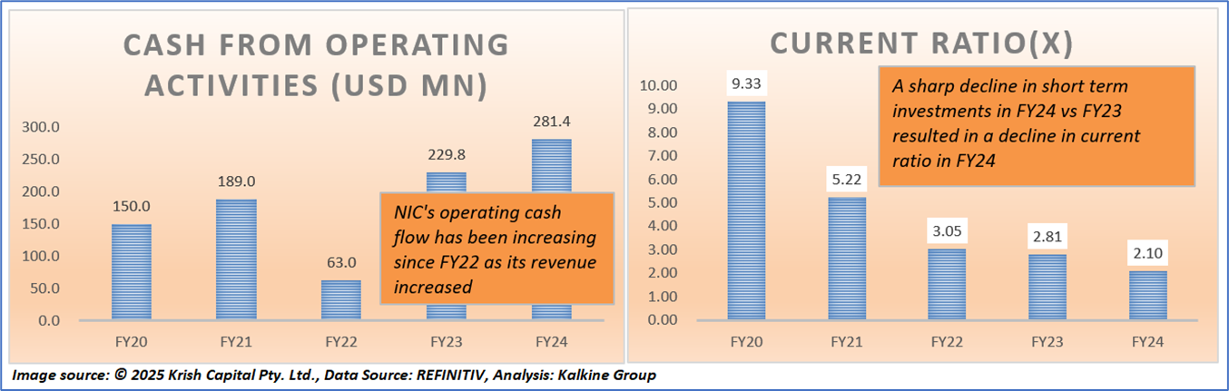 1.5 Key Metrics: In FY24, NIC's quick ratio was 1.70x compared to industry median of 1.13x. Below are captured other metrics: