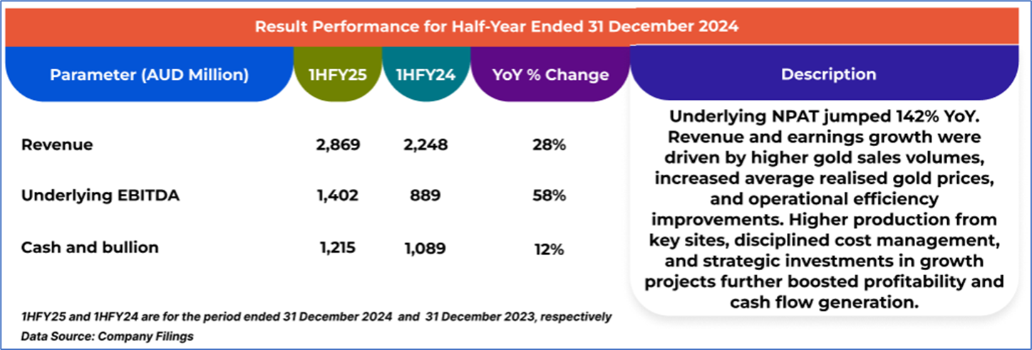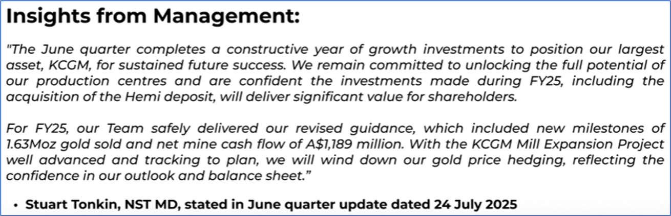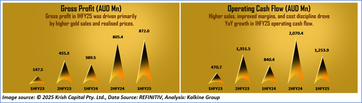 1.4: Key Metrics: NST recorded a 58% YoY increase in underlying EBITDA for 1HFY25, driven by higher gold sales and realised prices. Below is captured the metrics showing the trend of gross profit and operating cash flow since 1HFY23: