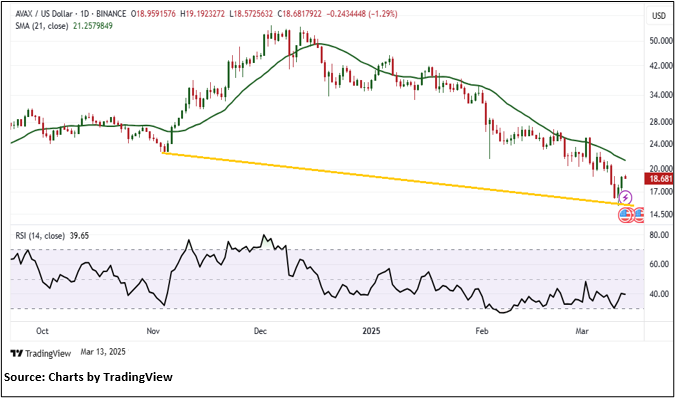 Typically, cryptocurrencies are termed as digital currencies and use blockchain technology to record every transaction. Avalanche (AVAX) is a blockchain platform designed to provide scalability, security, and decentralization through its innovative Proof of Stake (PoS) consensus mechanism. The AVAX token powers the ecosystem, allowing users to participate in governance, conduct transactions, and earn rewards for supporting network operations. AVAX has a market capitalization of ~USD 7.88 billion (as per TradingView as of March 13, 2025).