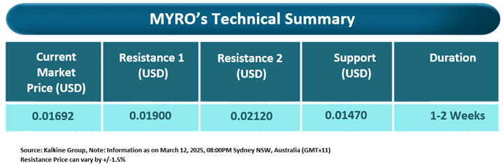 MYRO Technical Analysis Summary (On the Daily Chart):