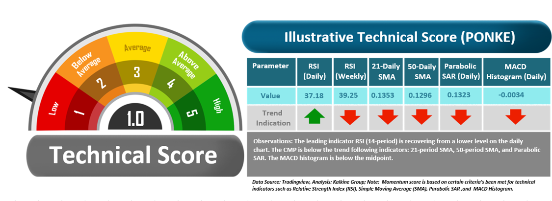 The Meme Coins Cryptocurrency Report covers Price Action, Technical Indicators Analysis along with the Resistance and Support Levels, on selected cryptocurrency. Noted below is the illustrative technical score based on technical indicators for Ponke (PONKE):
