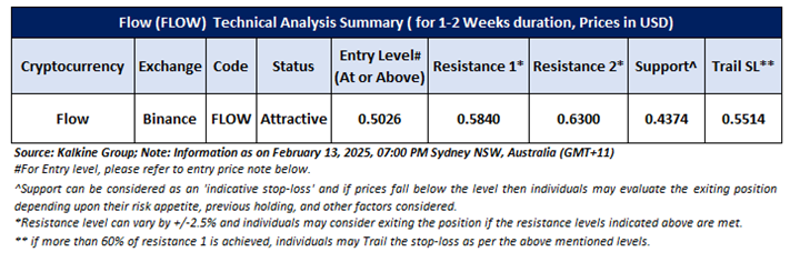 Based on the above-mentioned price action analysis and technical indicators outlook, Flow (FLOW) may witness movement in an upside direction. The trend looks to be in an interesting space and the currency looks ‘Attractive’ given the current price of USD 0.5181 (as on February 13, 2025, at 07:00 PM, (GMT+11) Time in Sydney NSW, Australia. However, volatility in the price should be borne in mind when looking at further evaluation for investment scenarios. Markets are trading in a highly volatile zone currently due to certain macro-economic issues and geopolitical tensions prevailing. Therefore, it is prudent to follow a cautious approach while making investment decisions.