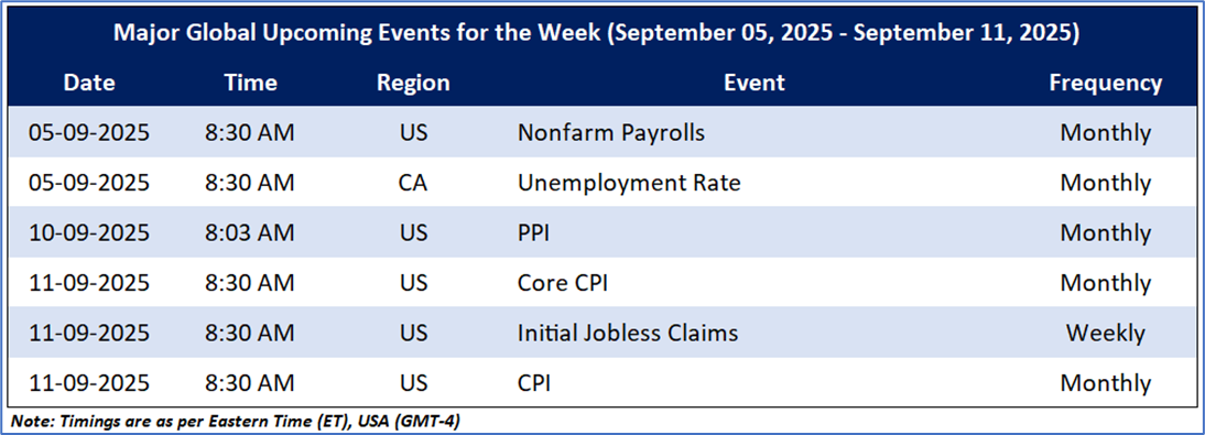 This week, the Russell 3000 index, an important benchmark of the US stock market across market capitalizations, initially, it began on a negative note and later turned positive. The index made high of 3703.77 during the week and settled at 3703.46 with a week-to-date (WTD) gain of ~0.63 percent on Sep 4, 2025. Other major indices, such as S&P 500 and NASDAQ Composite witnessed upside movement for the week. On Sep 4, 2025, the S&P 500 index settled at 652.09 with a WTD gain of ~0.65 percent, while the NASDAQ Composite Index settled at 21707.69 with a WTD gain of ~1.175 percent.