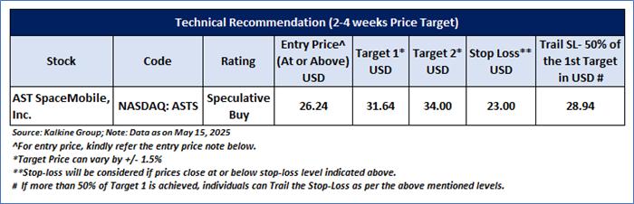 Company Overview: AST SpaceMobile, Inc. (NASDAQ: ASTS) is engaged in building a global cellular broadband network in space to operate directly with standard, unmodified mobile devices based on its intellectual property (IP) and patent portfolio and designed for both commercial and government applications. This Report covers the Price Action, Technical Indicators Analysis along with the Target Levels, Stop Loss, Support Levels, Resistance Levels, and Recommendation on stock.