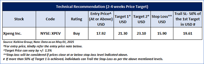 Company Overview: Xpeng Inc. (NYSE: XPEV) is a China-based company engaged in design, development, production and sales of smart electric vehicles (Smart EV). This Report covers the Price Action, Technical Indicators Analysis along with the Target Levels, Stop Loss, Support Levels, Resistance Levels, and Recommendation on stock.