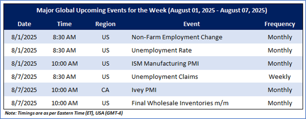 This week, the Russell 3000 index, an important benchmark of the US stock market across market capitalizations, initially started on a negative note and continued the momentum. The index made high of 3646.99 during the week and settled at 3601.46 with a week-to-date (WTD) loss of ~0.86 percent on July 31, 2025. Other major indices, such as S&P 500 and NASDAQ Composite witnessed sideways movement for the week. On July 31, 2025, the S&P 500 index settled at 6339.38 with a WTD loss of ~0.77 percent, while the NASDAQ Composite Index settled at 21122.45 with a WTD gain of ~0.07 percent.