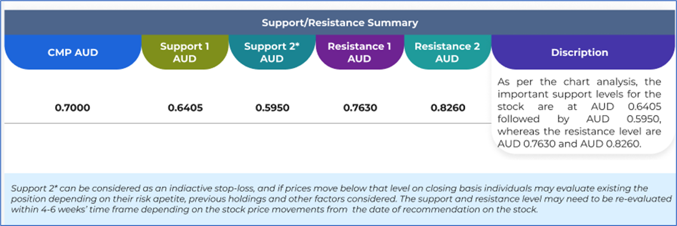 Note 3: Investment decisions should be made depending on an individual's appetite for upside potential, risks, holding duration, and any previous holdings. An 'Exit' from the stock can be considered if the Target Price mentioned as per the Valuation and or the technical levels provided has been achieved and is subject to the factors discussed above.