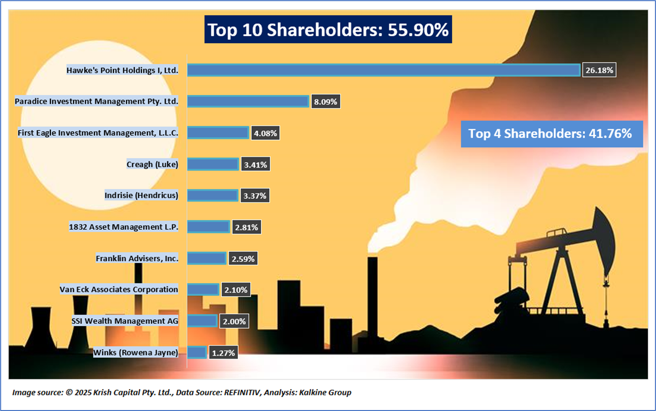 The top 10 shareholders together form 55.90% of the total shareholding. Hawke's Point Holdings I, Ltd and Paradice Investment Management Pty. Ltd hold maximum stakes in the company at 26.18% and 8.09%, respectively.