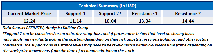 Kalkine’s Diversified Opportunities Report covers the Company Overview, Key positives & negatives, Investment summary, Key investment metrics, Top 10 shareholding, Business updates and insights into company recent financial results, Key Risks & Outlook, Price performance and technical summary, Target Price, and Recommendation on the stock.