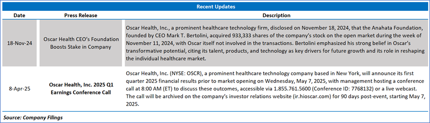 Oscar Health, Inc. (NYSE: OSCR) is a health insurance company, which has built a full stack technology platform focused on serving its members. It offers individual and family, and small group plans, and +Oscar, its full stack technology platform, to others within the provider and payor space. Its individual market primarily consists of policies purchased by individuals and families through health insurance marketplaces.