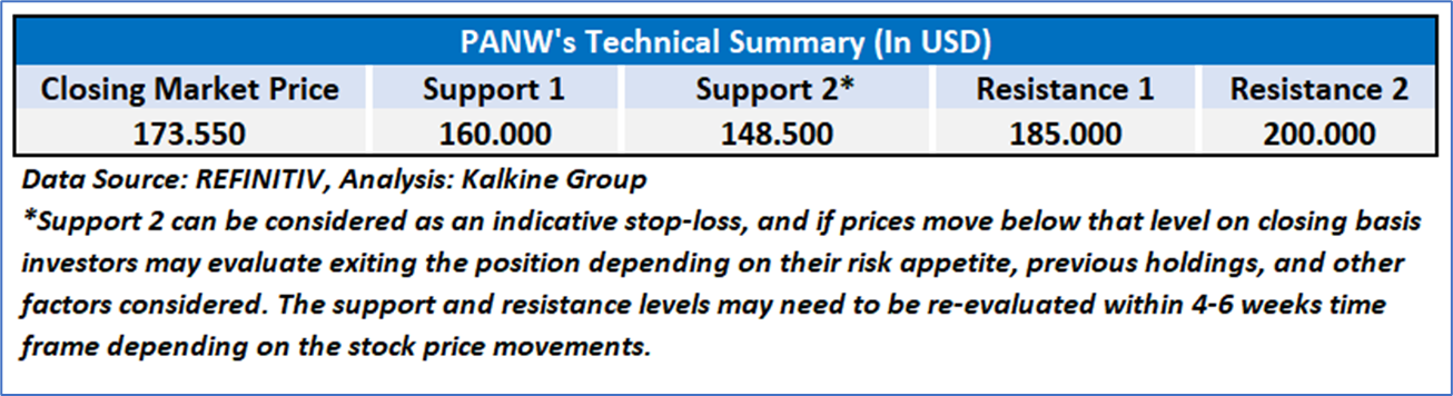 Note 3: Investment decisions should be made depending on an individual's appetite for upside potential, risks, holding duration, and any previous holdings. An 'Exit' from the stock can be considered if the Target Price mentioned as per the Valuation and or the technical levels provided have been achieved and is subject to the factors discussed above.