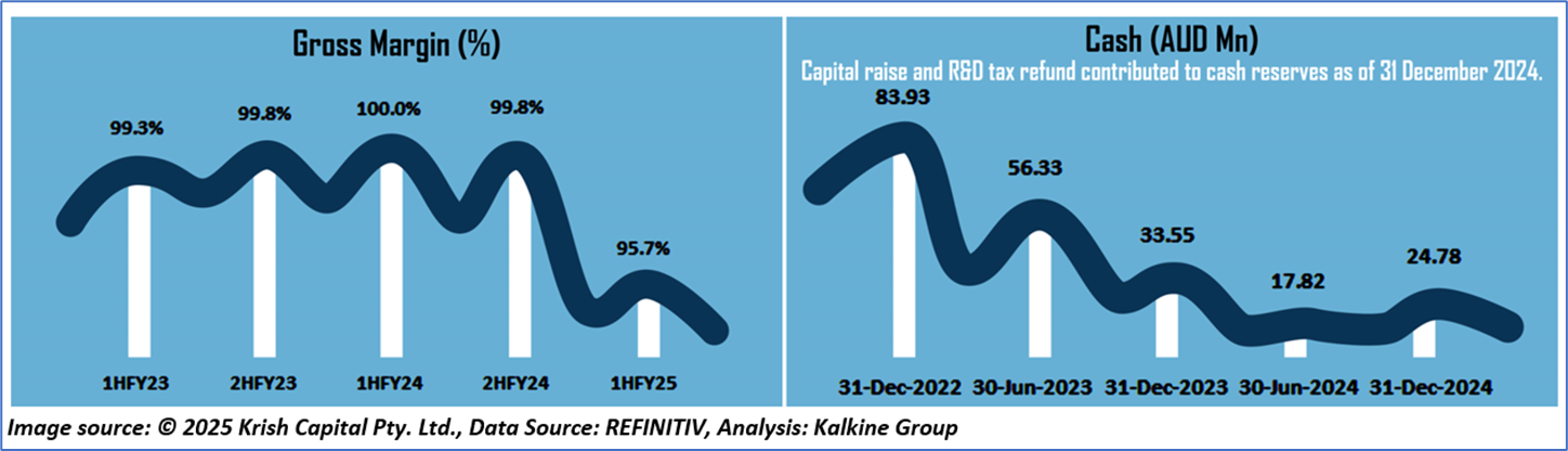 1.4: Key Metrics: PAR registered a current ratio of 29.98x in 1HFY25 vs industry median of 1.86x. Below is captured the metrics showing the trend of gross margin and cash:
