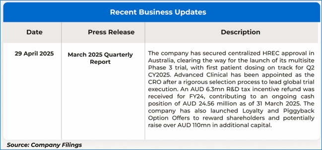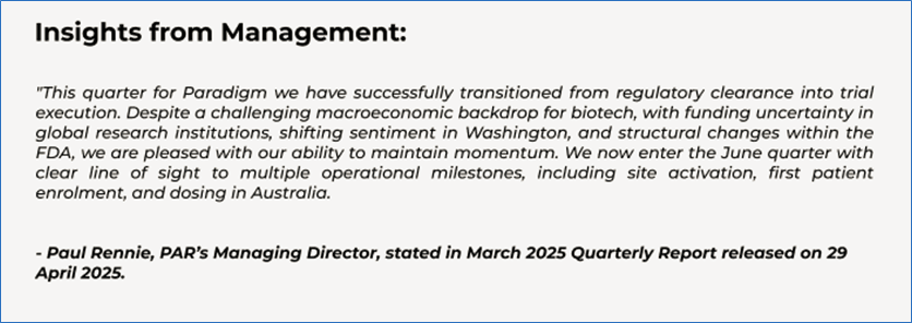 The stock has witnessed a decline of ~6.1% in the last one month, whereas over the last three months, it has corrected by ~47%. The stock has a 52-week low and 52-week high of AUD 0.165 and AUD 0.660, respectively, and is currently trading below the 52-week high-low average. PAR was last covered in a report dated ‘20 January 2025’.