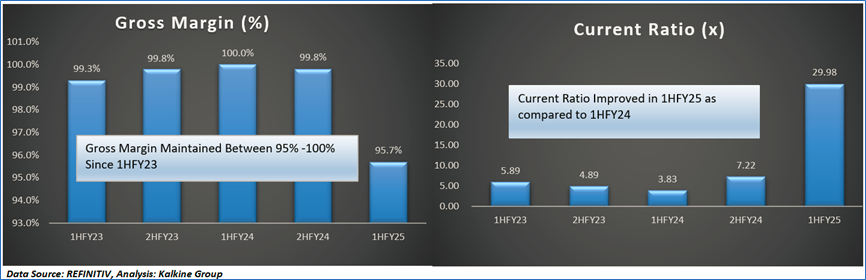 1.4 Key Metrics: In 1HFY25, Debt-to-Equity ratio stood at 0.01x, as compared to the Industry Median of 0.35x. Below are captured other metrics: