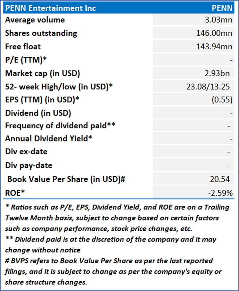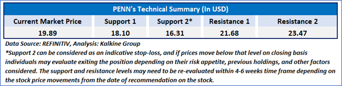 Kalkine’s Global Travel & Leisure Report covers the Investment Highlights, Key Financial Metrics, Risks, Technical Analysis along with the Valuation, Target Price, and Recommendation on PENN Entertainment Inc (NASDAQ: PENN).