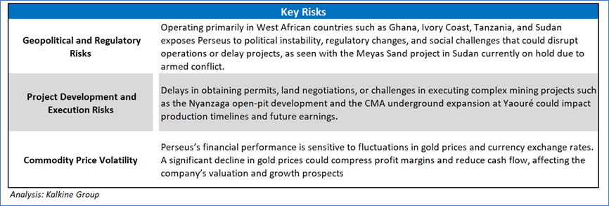 1.4 Key Metrics: Since 2021, Perseus Mining’s profitability margins have been primarily driven by a combination of rising gold prices, disciplined cost management, and steady production growth from key mines such as Yaouré and Edikan. Additionally, operational improvements and strategic project developments, such as the CMA underground project at Yaouré and the Nyanzaga project in Tanzania, should continue to support margin sustainability and growth prospects. Below are captured some key metrics:
