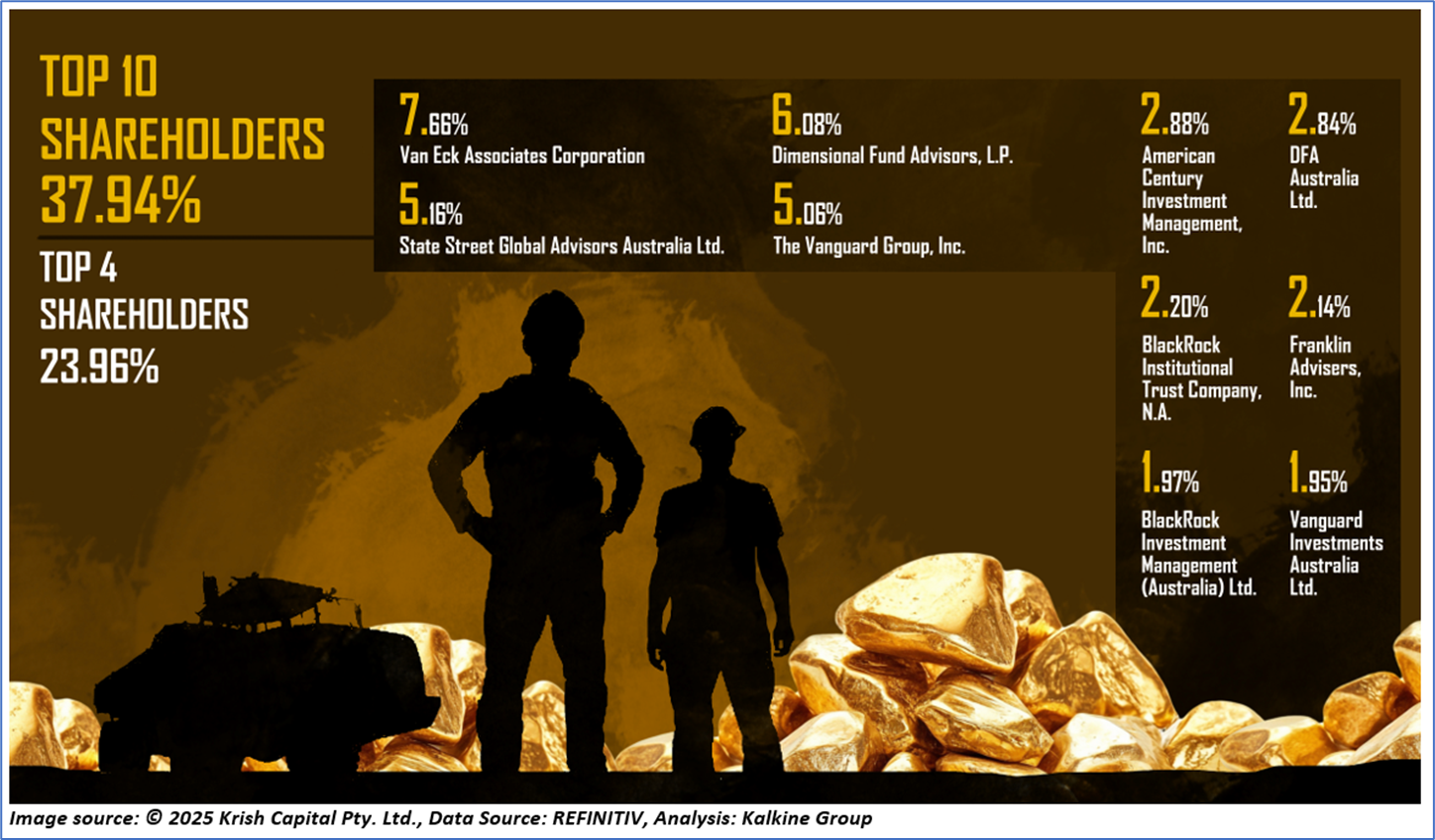 1.3: Top 10 Shareholders: The top 10 shareholders together form ~37.94% of the total shareholding. Van Eck Associates Corporation and Dimensional Fund Advisors, L.P. are holding maximum stakes in the company at ~7.66% and ~6.08%, respectively.