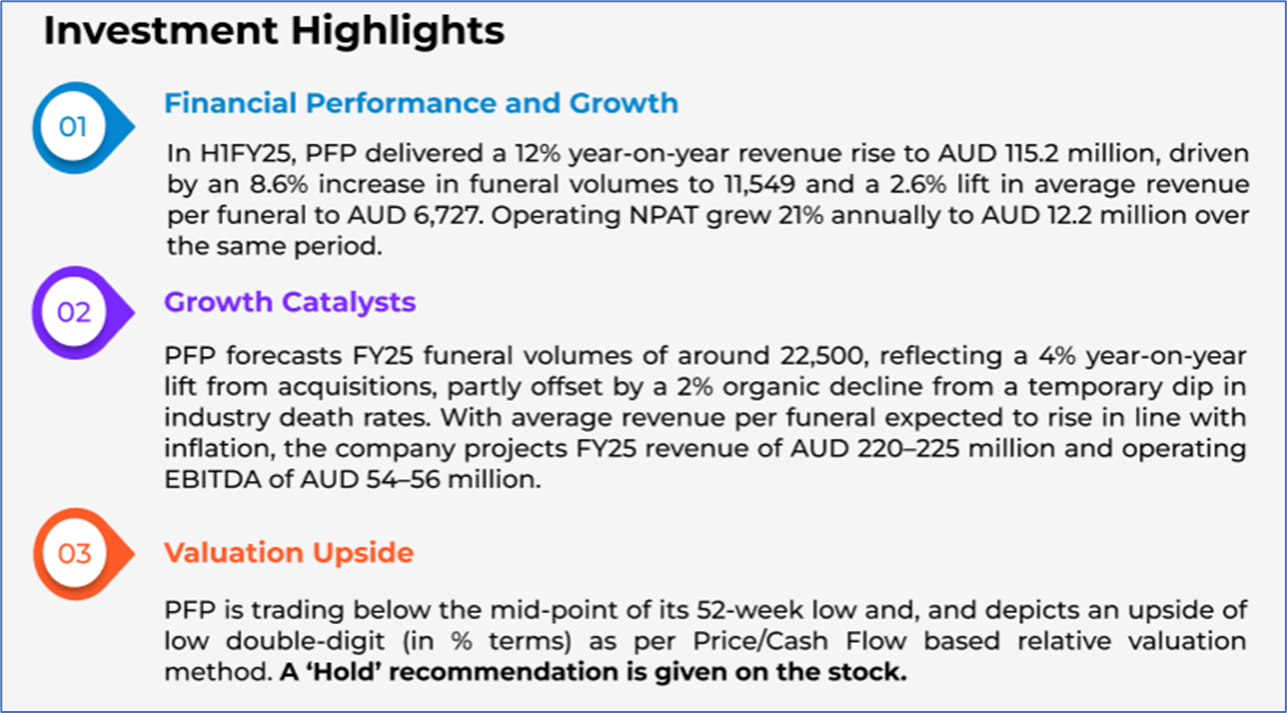 The stock is corrected ~18.57% in the last six months, whereas over the last five years, the stock has gained by ~73.19%. The stock has a 52-week low and 52-week high of AUD 4.20 and AUD 6.16, respectively, and is currently trading below the midpoint of its 52-week low and high. PFP was last covered in a report dated ‘15 July 2025’.