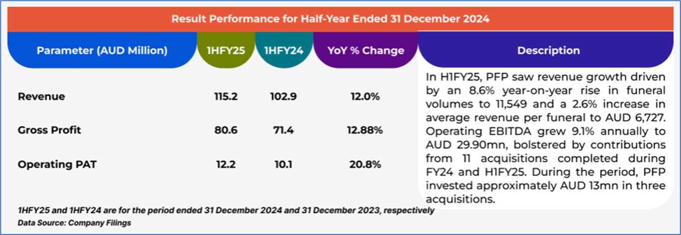 1.4 Key Metrics: In H1FY25, PFP's operating margin increased to 18.7% in H1FY25 from 17.9% in H1FY24. Below is captured other metrics: