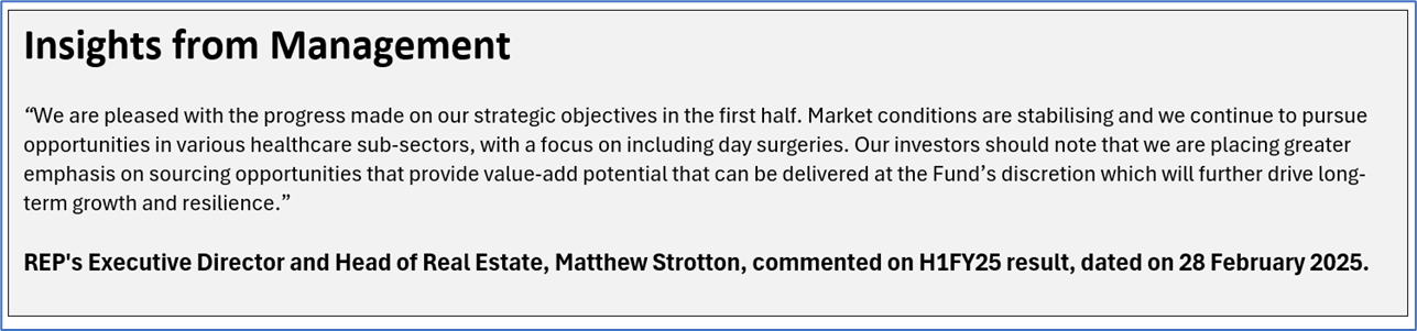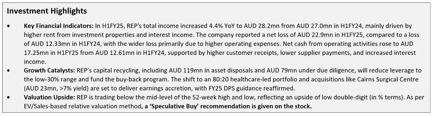 1.4 Key Metrics: REP’s current ratio increased to 2.40x in H1FY25 compared to 0.86x in H1FY24. Below is captured other metrics:
