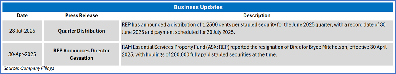 Kalkine’s Global Tariff Report covers the Investment Highlights, Key Financial Metrics, Risks, Technical Analysis along with the Valuation, Target Price, and Recommendation on the RAM Essential Services Property Fund (ASX: REP).