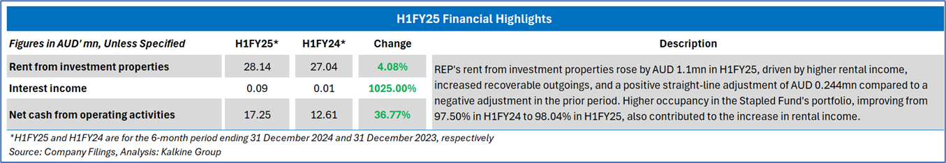 2.2 H1FY25 Results Highlights (for the 06 months ended 31 December 2024): Below mentioned are some key financial highlights: