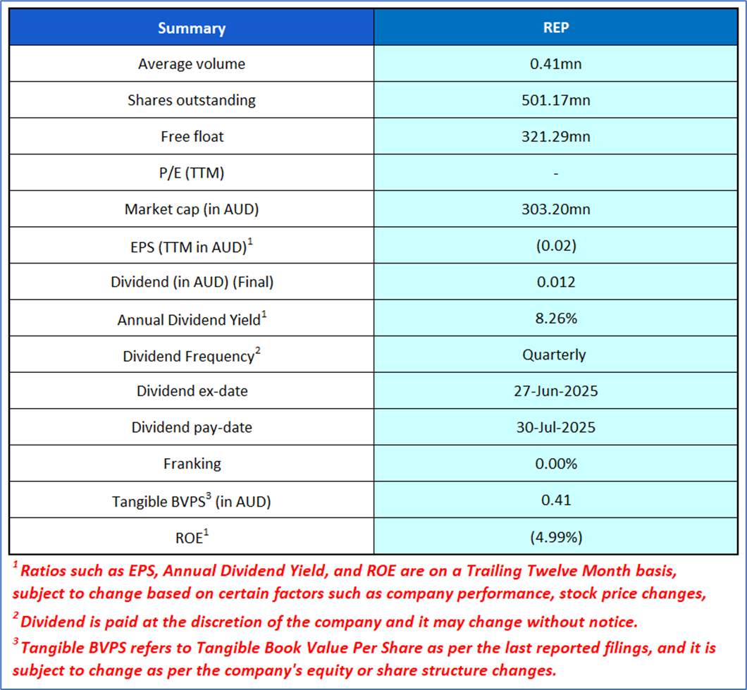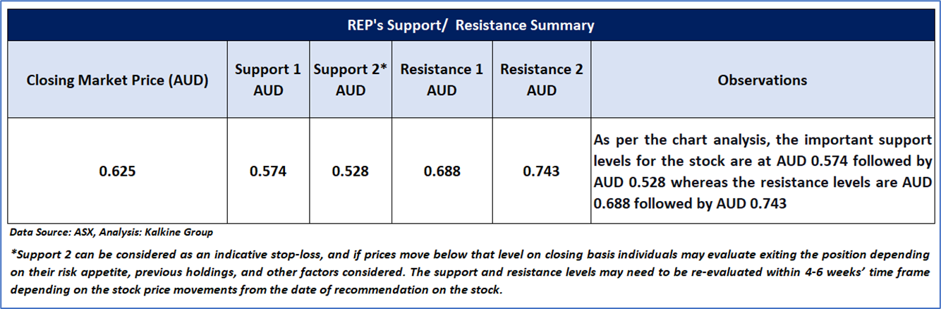 The stock has increased by ~8.70% in the last three months, whereas over the past one year, stock has decreased by ~2.34%. The stock has a 52-week low and 52-week high of AUD 0.530 and AUD 0.725, respectively, and is currently trading below the 52-week high-low average. The REP was last covered in a report dated ‘06 February 2023’.