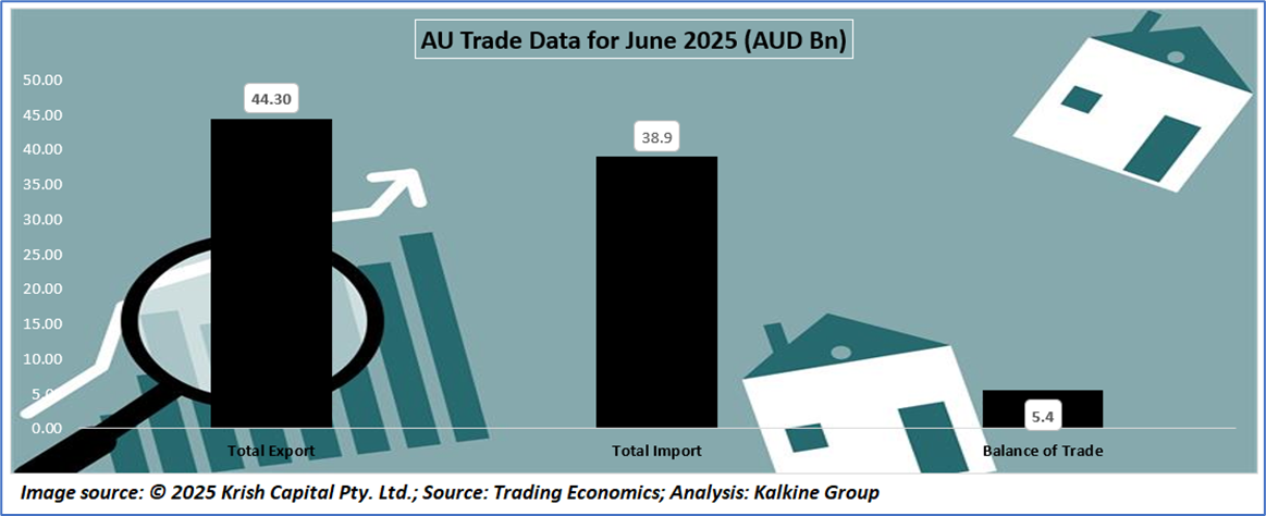 As of mid-2025, Australia's external sector indicators present a mixed economic outlook. The balance of trade showed a surplus of AUD 5.37 billion in June 2025, a significant improvement from the previous figure of AUD 1.6 billion, driven by exports of AUD 44.3 billion, surpassing imports at AUD 38.95 billion. Despite this, the current account remained in deficit at AUD -14.66 billion in March 2025, though slightly improved from AUD -16.31 billion in the previous quarter, equating to -2.1% of GDP. External debt reached a record high of AUD 2.69 trillion, reflecting ongoing borrowing needs. Terms of trade declined to 114 points from 119, suggesting less favorable trade conditions. On the capital side, capital flows decreased to AUD 6.23 billion in March, and foreign direct investment saw a notable rise to AUD 81 billion by the end of 2024. In tourism, 611,180 arrivals were recorded in May 2025, slightly down from the previous month.