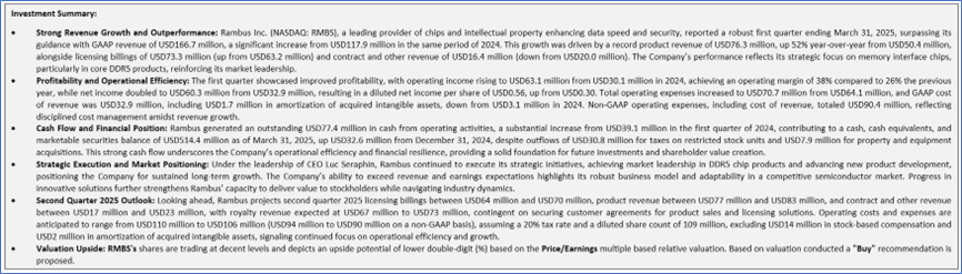 Note 2: The reference date for all price data, currency, technical indicators, support, and resistance levels is April 29, 2025. The reference data in this report has been partly sourced from REFINITIV.