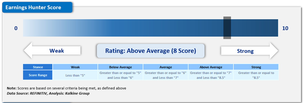 Note 3: Investment decision should be made depending on an individual's appetite for upside potential, risks, holding duration, and any previous holdings. The ‘Earnings Hunter Score’ typically provides an indication on the stance of the stock based on certain earnings-related criteria and the company’s performance versus the historical average and peers’ median.