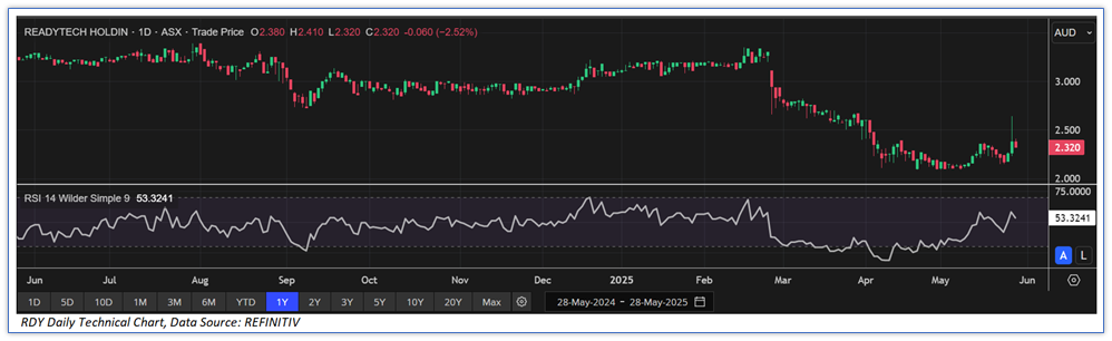The stock has declined by ~21.36% in the last six months, and over the last nine months, it has decreased by ~27.50%. The stock has a 52-week low and 52-week high of AUD 2.090 and AUD 3.390, respectively, and is currently trading below the 52-week high-low average. RDY was last covered in a report dated ’9 April 2025’.