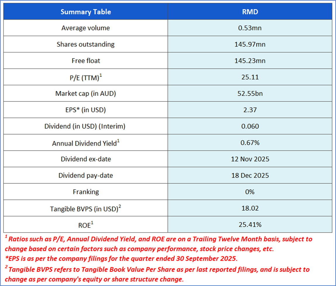 1.1: Company Overview: ResMed Inc. (ASX: RMD) is a provider of digital health technologies and cloud-connected medical devices. The products and solutions are designed for people with sleep apnea, chronic obstructive pulmonary disease (COPD), and other chronic diseases. The company sells its products in 140 countries through a combination of wholly owned subsidiaries and independent distributors. Kalkine’s Healthcare Report covers the Investment Highlights, Management Insights, Key Financial Metrics, Risks, Technical Analysis along with the Valuation, Target Price, and Recommendation on the stock.