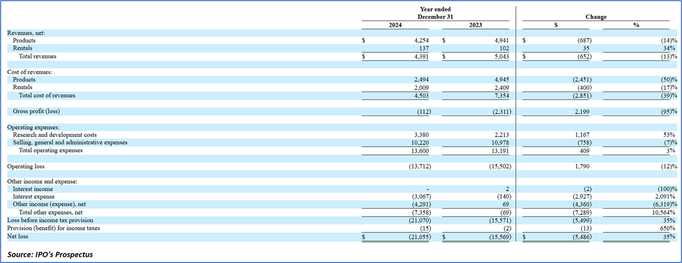 - Risk of Sustained Losses and Profitability Challenges: The company has a history of substantial net losses, amounting to USD 21.1 million and USD 15.6 million for the years ended December 31, 2024, and 2023, respectively, and USD 5.6 million and USD 2.0 million for the three months ended March 31, 2025, and 2024. With an accumulated deficit of USD 55.4 million as of March 31, 2025, ongoing investments in sales expansion, manufacturing, regulatory approvals, and research are expected to perpetuate these losses. Failure to achieve sufficient revenue growth or commercialize new products could exacerbate working capital constraints, potentially hindering the company's ability to attain or maintain profitability and adversely affecting stockholder equity.