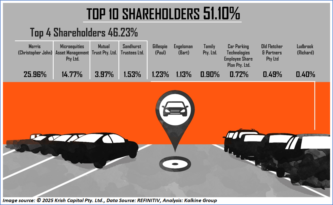 The top 10 shareholders together form ~51.10% of the total shareholding. Morris (Christopher John) and Microequities Asset Management Pty Ltd. hold a maximum stake of 25.96% and 14.77%, respectively.