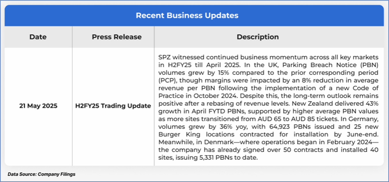The stock has witnessed a decline of ~7.45% in the last one month, whereas over the last six months, it has fallen by ~11.89%. The stock has a 52-week low and 52-week high of AUD 0.470 and AUD 1.140, respectively, and is currently trading close to its 52-week high-low average. SPZ was last covered in a report dated ‘9 July 2025’.