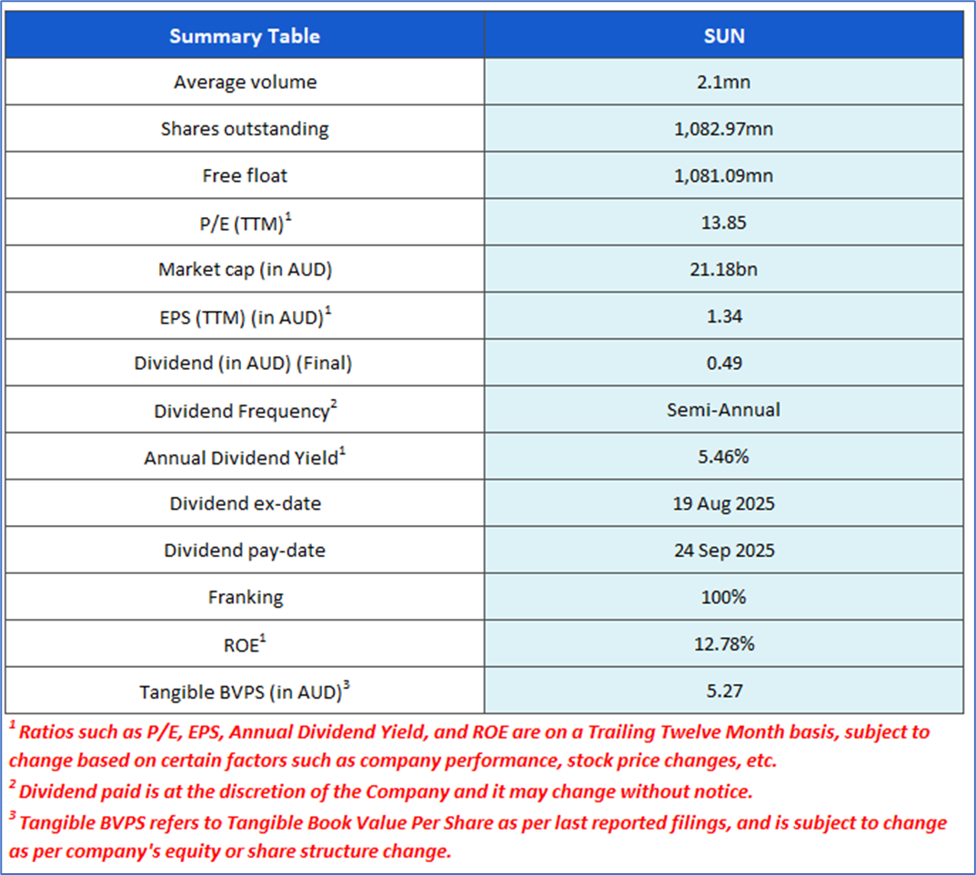 1.1: Company Overview: Suncorp Group Limited (ASX: SUN) is a Trans-Tasman insurer providing general insurance products and services to retail, commercial, and corporate customers across Australia and New Zealand. Headquartered in Brisbane with a history spanning over a century, Suncorp operates through some of the region’s most trusted insurance brands. The company is focused on delivering better outcomes through digital innovation and customer-centric solutions. Kalkine’s Investor Report covers the Investment Highlights, Management Insights, Key Financial Metrics, Risks, Technical Analysis along with the Valuation, Target Price, and Recommendation on the stock.