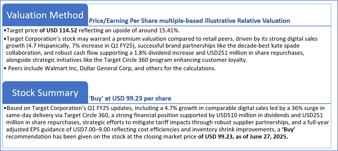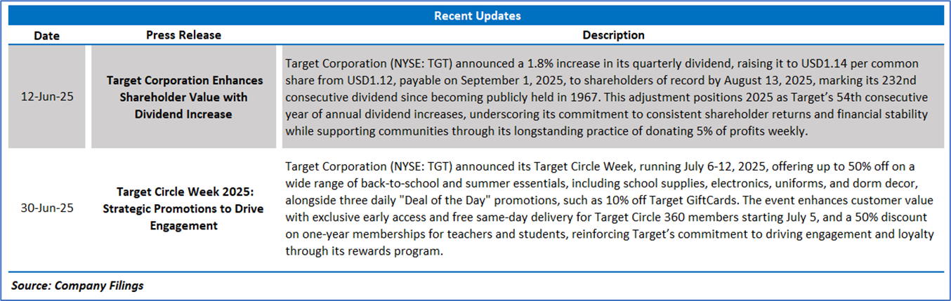 Target Corporation (NYSE: TGT) is a general merchandise retailer selling products to its guests through its stores and digital channels. The Company offers customers, referred to as guests, everyday essentials and fashionable, differentiated merchandise at discounted prices. The majority of its stores offer a wide assortment of general merchandise and food. Its merchandise categories include apparel and accessories, beauty and household essentials, food and beverage, hardlines, and home furnishings and decor.
