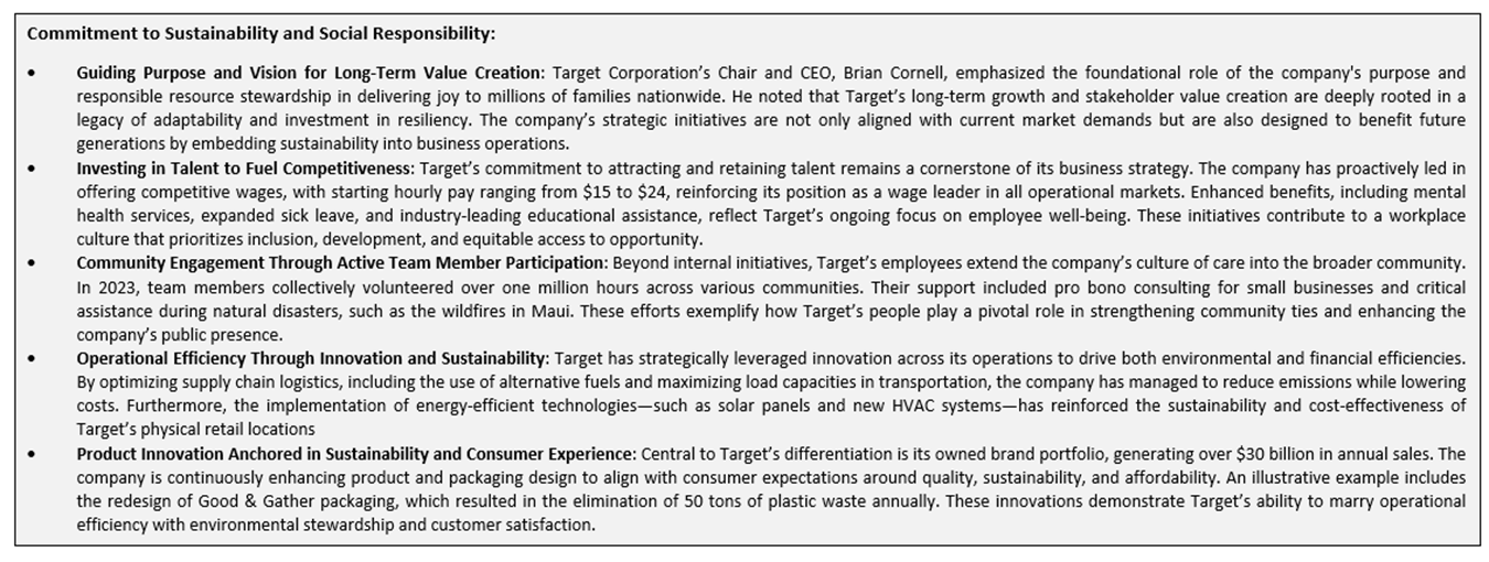 The shift toward a low-carbon economy is one of the most significant challenges of current time, spurred by the urgent need to combat climate change and reduce the environmental impact of corporate activities. This report covers the US-listed low-carbon emission company Target Corporation (NYSE: TGT), that is committed to sustainability and responsible environmental practices.