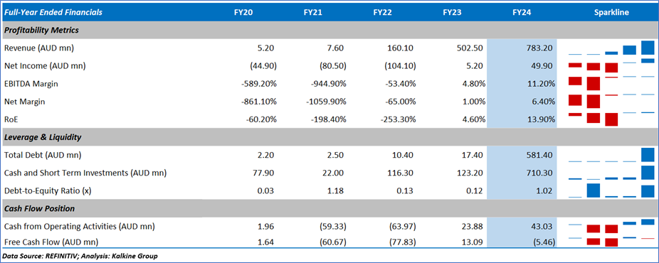 1.4: Key Metrics: TLX registered an inventory turnover ratio of 10.8x in FY24 compared with the industry median of 1.2x. Below is captured the metrics showing the trend of revenue and cash: