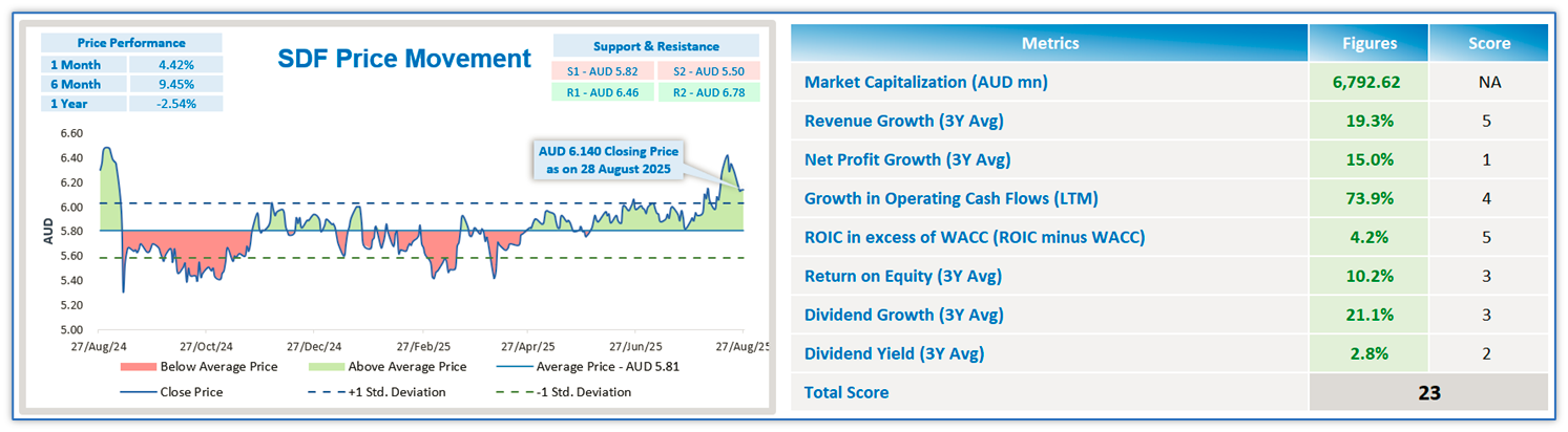 ASX-listed Dividend Stocks are scored based on the below set of quantitative fundamental criteria’s as per Kalkine’s unique scoring methodology. The objective is to screen the dividend paying companies with a track record of 3 years return on equity and 3 years revenue growth. Only stocks that scored highest and met the selection criterias based on all of the above quantitative fundamental metrics were further scored. The scoring was done among all the screened stocks based on their fundamental performance relative to the stock basket selected.