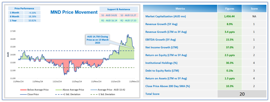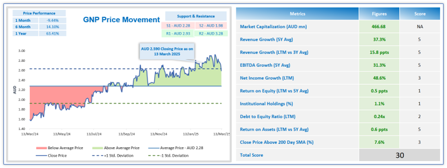 ASX-listed growth stocks are scored based on the below set of quantitative fundamental criteria’s as per Kalkine’s unique scoring methodology. The objective is to screen the growth companies with a track record of revenue and EBITDA growth for 5 or more years. Only stocks that scored highest and met the selection criterias based on all of the above quantitative fundamental metrics were further scored. The scoring was done among all the screened stocks based on their fundamental performance relative to the stock basket selected.