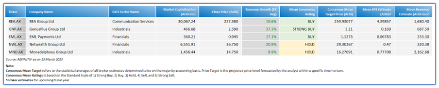 Section 3: Key Broker Consensus Data on Growth Stocks