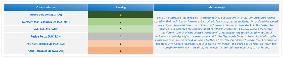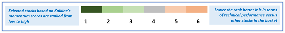 Note: Selected Momentum Stocks are ranked from low to high using Kalkine’s unique ranking methodology, where-in low rank implies better technical metrics performance versus other stocks in the basket. Refer to Section 5 for more details on metrics used in ranking the Momentum Stocks from low to high.