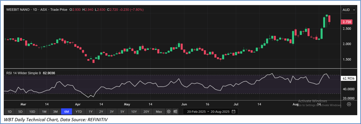 Section 2.0: Weebit Nano Limited (‘Speculative Buy’ at AUD 2.720 at closing market price per share as on 20 August 2025)