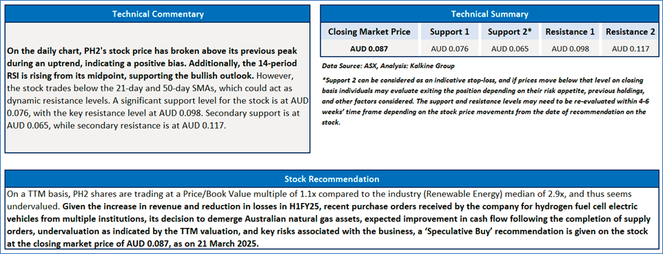 1. Pure Hydrogen Corporation Limited (ASX: PH2) (Recommendation: Speculative Buy, Market Cap: AUD 32.49mn)