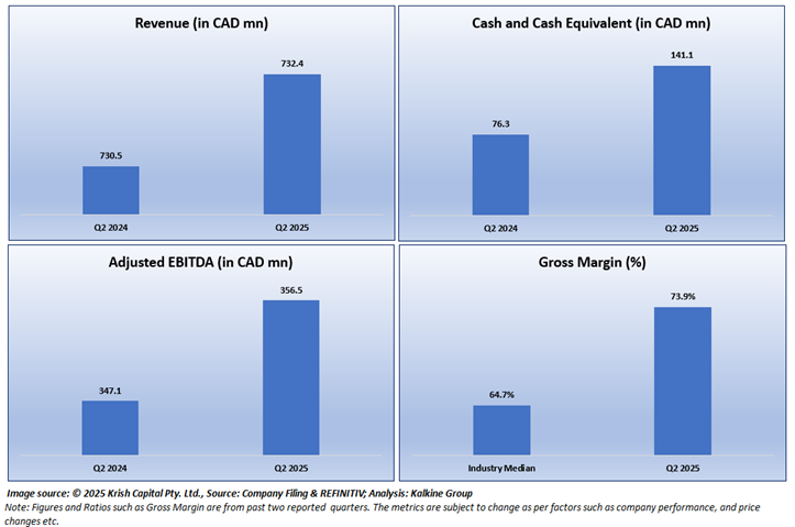Below charts depict the change in Revenue, Net Cash flow from Operating Activities, Adjusted EBITDA, and Gross Margin of the Company for the latest reported quarter.