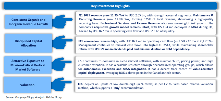 Constellation Software Inc. (TSX: CSU) is a Canada-based company that develops and customizes software for public- and private-sector markets. The firm acquires, manages, and builds vertical-specific businesses. Its operations are organized in two segments: Public Sector and Private Sector. The portfolio companies serve various markets including communications, credit unions, beverage distribution, tour operators, auto clubs, textiles and apparel, hospitality, and community care. The firm has operations in North America, Europe, Australia, South America, and Africa.