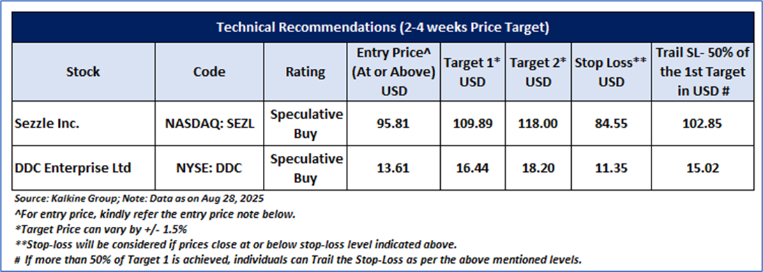 Having understood the US market performance over the week, taking cues from major global news, and based on technical analysis of the Russell 3000 index for the upcoming week, now let’s have a look at the two US-listed stocks to pick from the technical standpoint. Noted below recommendations are based on the entry price, target prices, and stop-loss for Sezzle Inc. (NASDAQ: SEZL) and DDC Enterprise Ltd (NYSE: DDC) for the next 2-4 weeks duration: